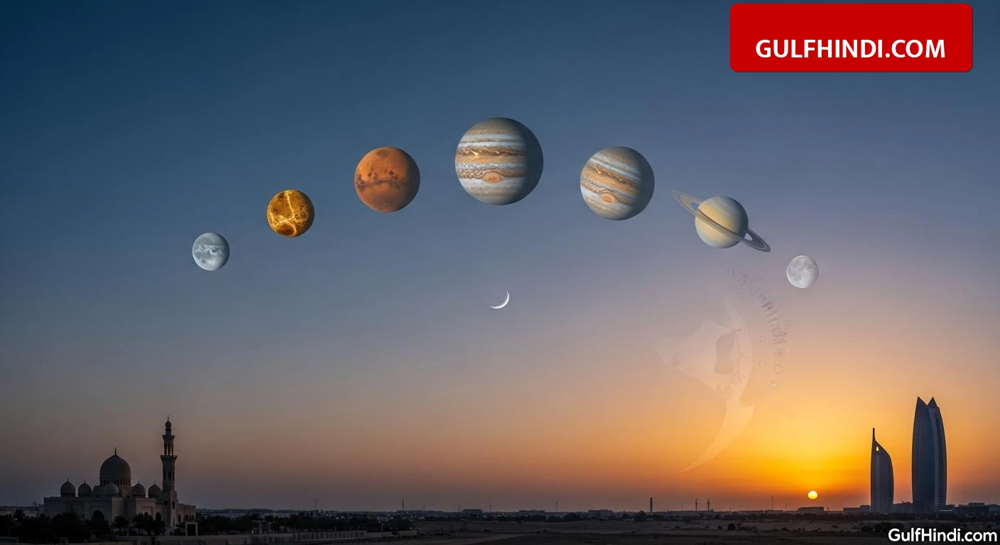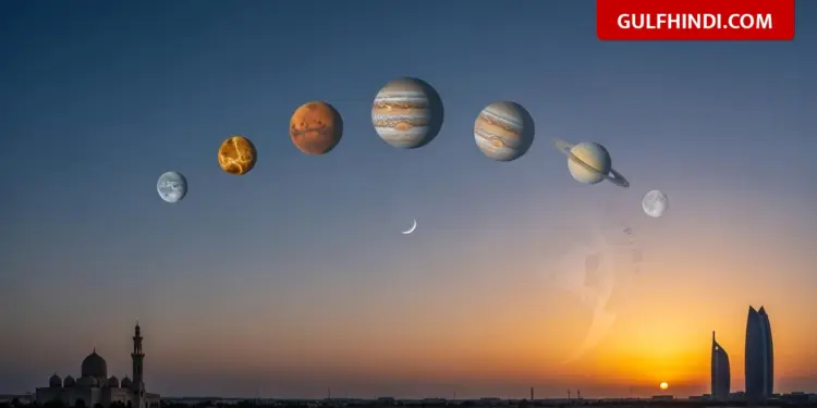संयुक्त अरब अमीरात (UAE) में आज, यानी 28 फरवरी 2026 की शाम बेहद खास होने वाली है। रमजान के इस पवित्र महीने में आसमान में एक दुर्लभ नजारा देखने को मिलेगा। आज शाम सूरज ढलने के बाद 6 ग्रह एक सीधी रेखा में कतार बनाते हुए दिखाई देंगे। इसे ‘Planetary Parade’ कहा जा रहा है, जो खगोल विज्ञान में रुचि रखने वालों के लिए किसी जादू से कम नहीं है। यह नजारा न केवल वैज्ञानिकों के लिए बल्कि आम लोगों के लिए भी बेहद खास है।