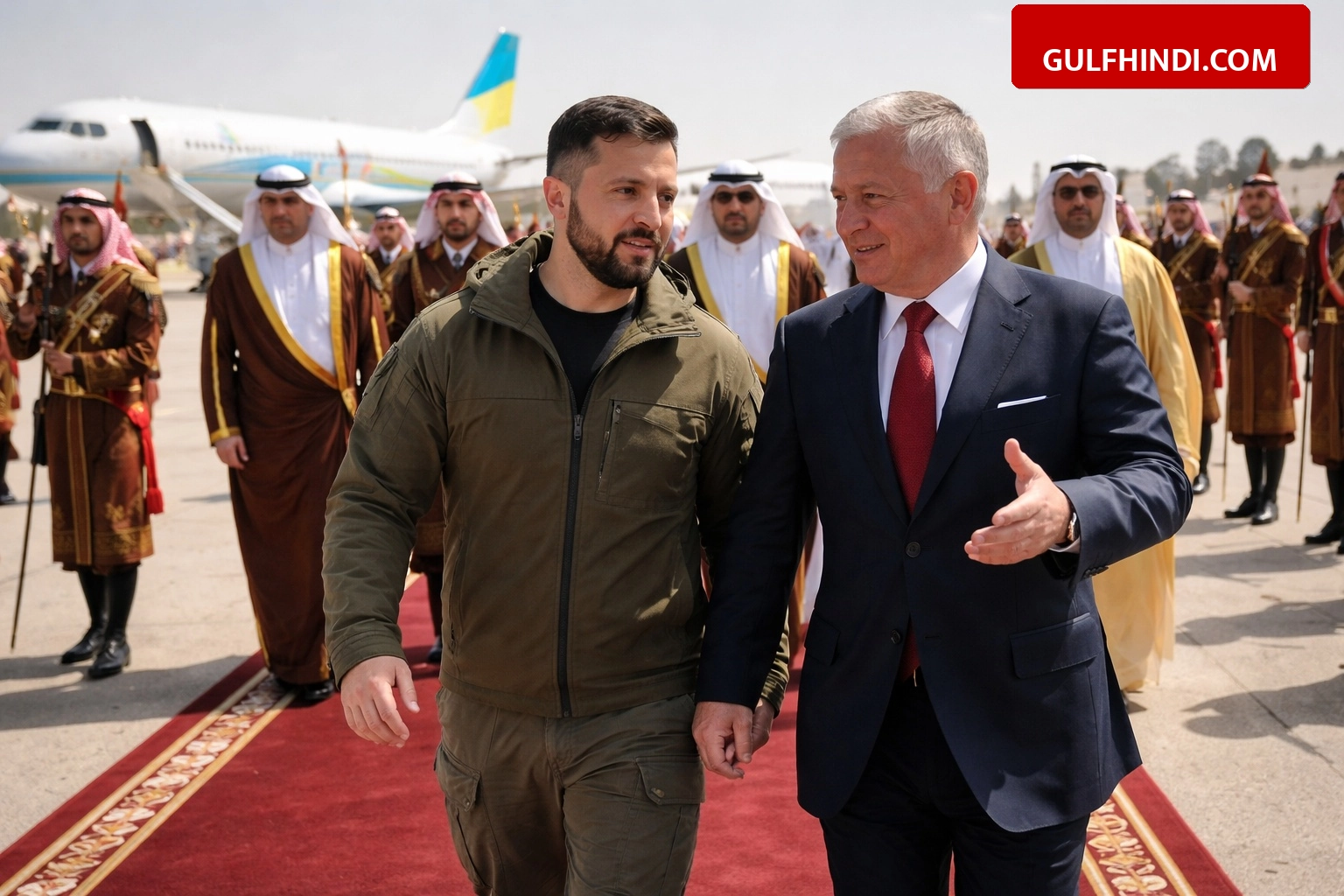 यूक्रेन के राष्ट्रपति Volodymyr Zelenskyy रविवार, 29 मार्च 2026 को जॉर्डन की राजधानी अम्मान पहुंचे। वह वहां महत्वपूर्ण बैठकों के लिए गए हैं ताकि खाड़ी क्षेत्र के देशों के साथ रक्षा संबंधों को और मजबूत किया जा सके। जॉर्डन के शाह किंग अब्दुल्ला II और राष्ट्रपति Zelenskyy के बीच क्षेत्रीय हालातों और आपसी रिश्तों पर विस्तार से चर्चा होने वाली है। यह दौरा यूक्रेन की उस कोशिश का हिस्सा है जिसके तहत वह खाड़ी देशों के साथ बड़े सुरक्षा गठबंधन बनाना चाहता है।