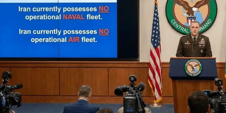 अमेरिकी सेंट्रल कमांड (CENTCOM) ने आधिकारिक तौर पर जानकारी दी है कि ईरान के पास अब कोई सक्रिय नौसेना या वायु सेना नहीं बची है। 28 फरवरी 2026 को शुरू हुए Operation Epic Fury के बाद अमेरिकी सेना ने दावा किया है कि ईरान की सैन्य ताकत अब लगभग खत्म हो चुकी है। राष्ट्रपति Donald Trump ने भी अपने संबोधन में कहा है कि ईरान की नौसेना पूरी तरह जा चुकी है और उनकी वायु सेना खंडहर में तब्दील हो गई है। इस सैन्य ऑपरेशन के मुख्य रणनीतिक उद्देश्य अब पूरे होने के करीब हैं।