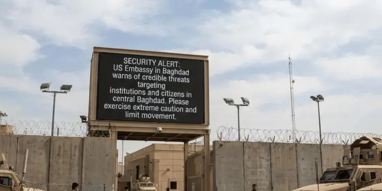 इराक की राजधानी बगदाद में सुरक्षा को लेकर अमेरिकी दूतावास ने एक गंभीर अलर्ट जारी किया है। रिपोर्ट के अनुसार, ईरान से जुड़े मिलिशिया समूह अगले 24 से 48 घंटों के भीतर बगदाद के मध्य इलाकों में हमला कर सकते हैं। दूतावास ने साफ किया है कि इन हमलों में अमेरिकी नागरिकों, उनके बिजनेस और सरकारी इमारतों को निशाना बनाया जा सकता है। वर्तमान स्थिति को देखते हुए सुरक्षा व्यवस्था को कड़ा कर दिया गया है।