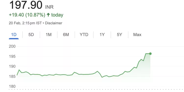 कर्ज में डूबी कंपनी ज़ी एंटरटेनमेंट एंटरप्राइजेज लिमिटेड (ZEEL) के शेयरों में मंगलवार को 7% से अधिक की तेजी देखी गई, जो दिन के बढ़कर ₹192 हो गए। यह उछाल इस खबर के बाद आया कि ज़ी ने $10 बिलियन के सौदे को रद्द करने के बाद फिर से सोनी ग्रुप के साथ विलय (merger) की बातचीत शुरू की है।
